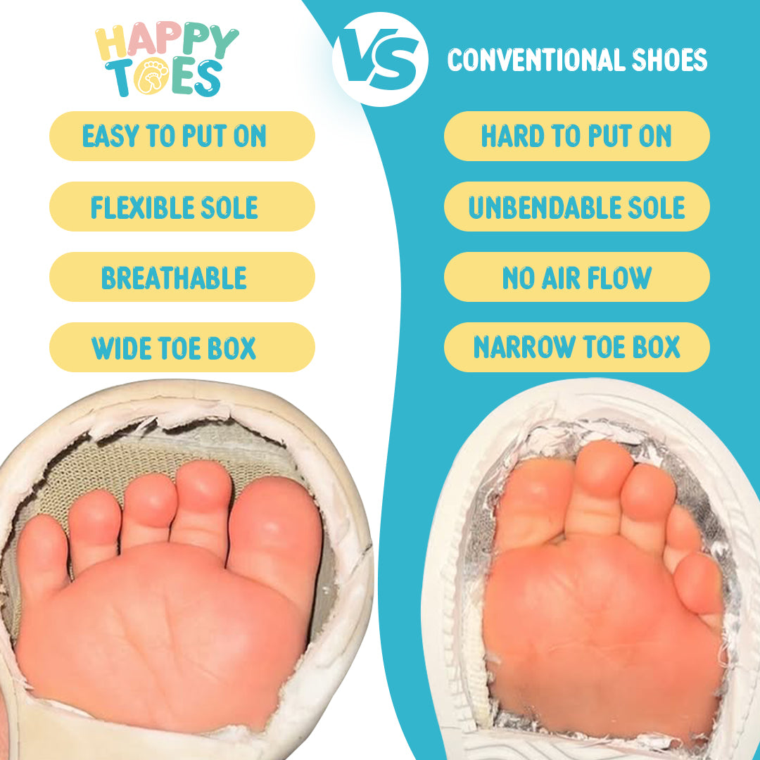 Happy Toes Sock Shoes are the perfect solution. With a barefoot-friendly fit, wide toe box, and zero-drop sole, they allow your little one’s feet to grow strong and naturally — just as nature intended.